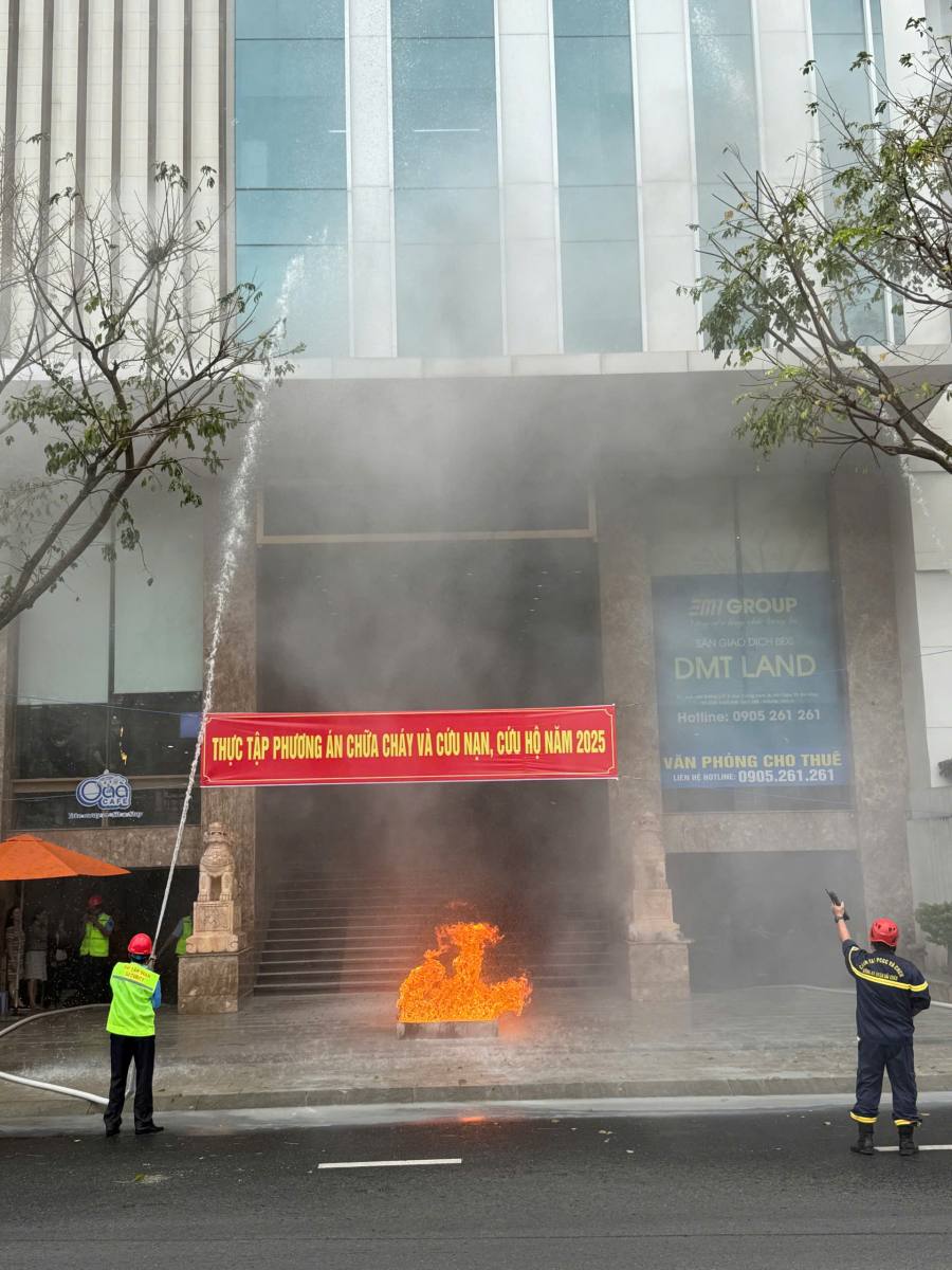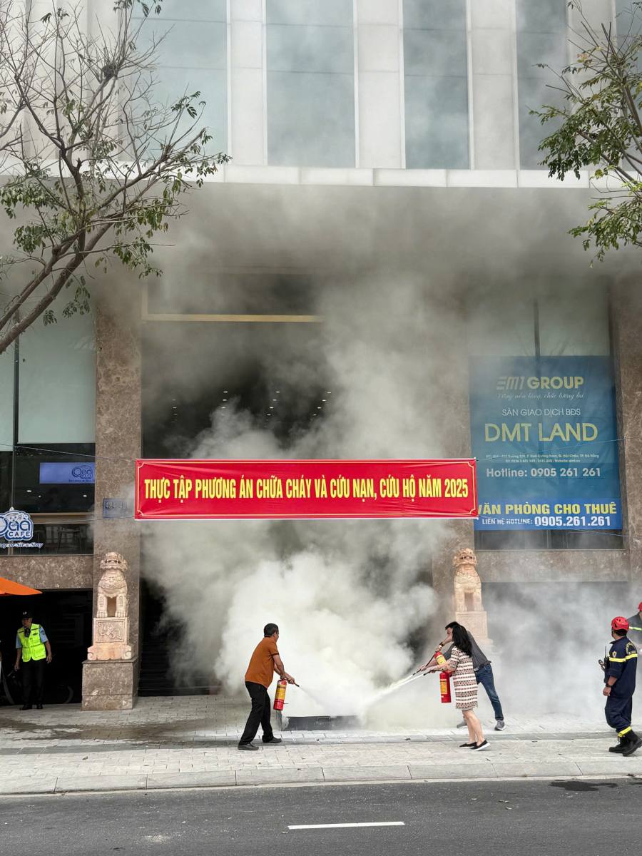 Buổi thực tập có sự tham dự của đội Cảnh sát PCCC & CNCH Công an TP. Đà Nẵng, Ban lãnh đạo và toàn thể CBNV DMT Group, cùng các đơn vị thuê văn phòng đang hoạt động kinh doanh tại tòa nhà DMT Group.